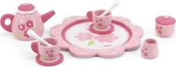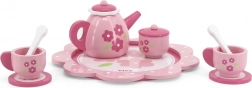 Zestaw zawiera wszystko, co potrzebne do zabawy w herbatkę: czajnik, dzbanek, cukiernicę, filiżanki, spodki, łyżeczki i tacę.