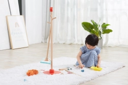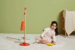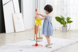 Dzięki różnorodnym narzędziom do sprzątania dzieci udoskonalają swoją motorykę i równowagę podczas zabawy.