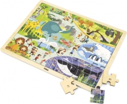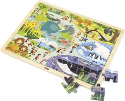 Ta urocza drewniana układanka z motywami zwierzątek z zoo ucieszy wszystkich małych miłośników puzzli. Wysokiej jakości drewniane elementy dobrze leżą w dłoni i zapewniają długą żywotność nawet przy częstym użytkowaniu. Po ułożeniu powstaje piękny obrazek o wielkości ok. 40 × 30 cm, który można składać wielokrotnie.