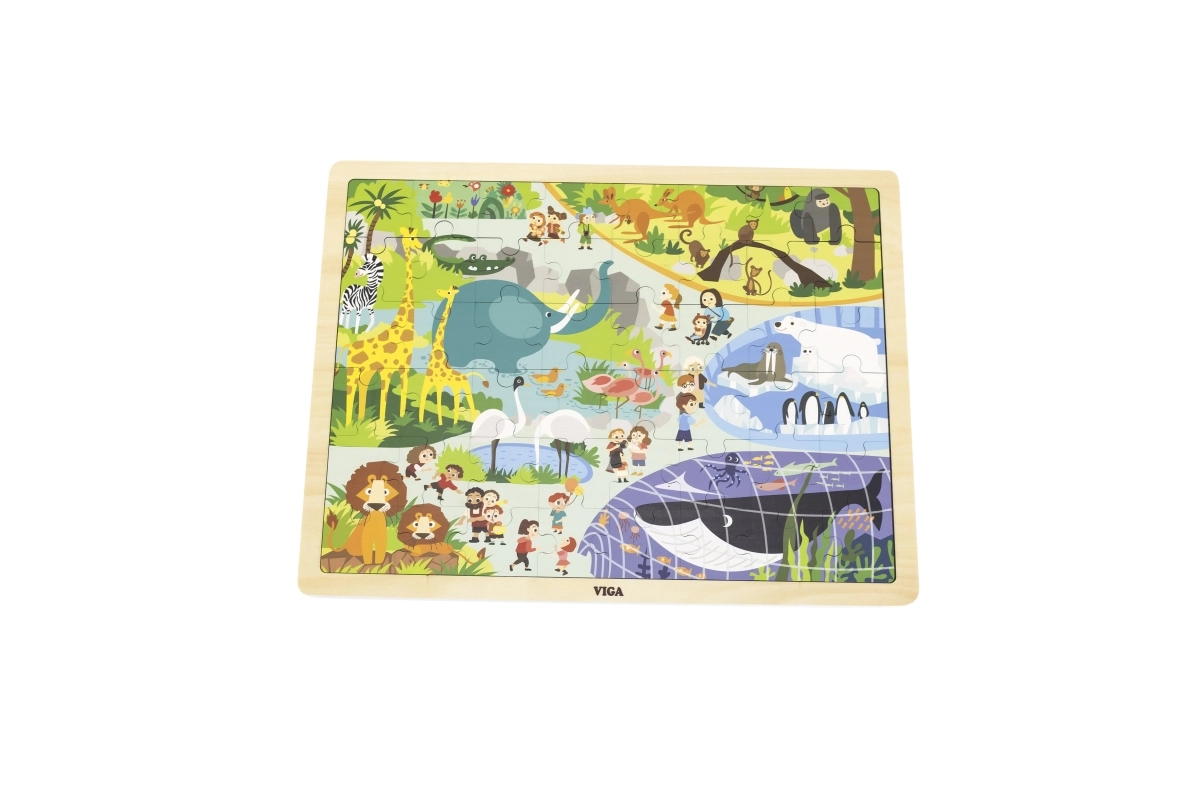 Dzięki 48 elementom puzzle stanowią świetny krok między prostymi układankami a bardziej zaawansowanymi puzzlami. Wspierają koordynację, percepcję ciągłą oraz poznawanie zwierząt z zoo.