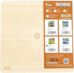 Stabilna drewniana podkładka ułatwia układanie i utrzymuje elementy razem – idealna w domu i w podróży. Bezpieczne wykonanie i przyjemne wymiary zapewniają wygodną i radosną zabawę każdego dnia.