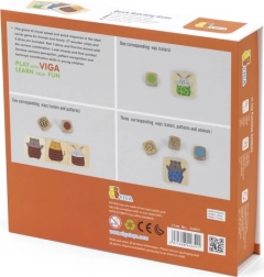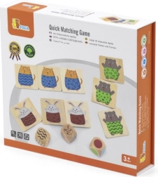 Drewniana gra szybkie dopasowywanie marki VIGA to rodzinna gra towarzyska, która trenuje spostrzegawczość, logikę i pamięć. Gracze rzucają 1–3 kostkami i szukają właściwego zwierzątka z odpowiadającym wzorem na koszulce oraz kolorem. Wykonana z wysokiej jakości drewna i malowana nietoksycznymi farbami – bezpieczna dla dzieci.
