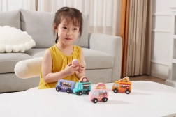 Dzięki kompaktowemu rozmiarowi autka łatwo trzymają się nawet w najmniejszych rączkach. Zabawa wspiera rozwój małej motoryki, koordynacji, rozpoznawania kolorów oraz logicznego myślenia. Zestaw świetnie uzupełnia dziecięce kuchnie czy miasteczka i jest idealnym wyborem do wspólnej zabawy rodzeństwa.