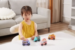 Gładkie, solidne drewno oraz zaokrąglone krawędzie gwarantują bezpieczeństwo. Autka świetnie leżą w dłoni i są idealne na pierwsze jazdy oraz ćwiczenie małej motoryki.