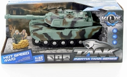 Odkryj pełną akcji zabawę z dziecięcym czołgiem w ciemnym, moro wykończeniu. Realistyczne wrażenia zapewniają efekty dźwiękowe strzałów i świecące działo po naciśnięciu przycisku. Dzięki napędowi bezwładnościowemu czołg łatwo porusza się po płaskiej powierzchni bez potrzeby zdalnego sterowania.