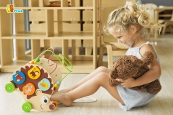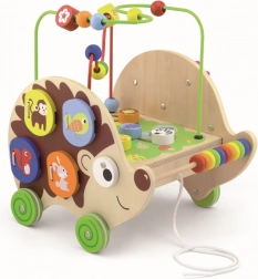 Ta multifunkcyjna zabawka do ciągnięcia w kształcie jeża od VIGA łączy ulubione elementy edukacyjne w jedno sprytne centrum zabawy. Dzieci lubią przesuwać koraliki w kulkowym labiryncie, kręcić kołami zębatymi, pokonywać labirynt ze zwierzątkami, próbować liczenia i odkrywać edukacyjne obrotowe elementy. Różnokolorowe wykonanie naturalnie zachęca do odkrywania i wspiera koncentrację.