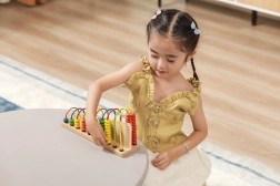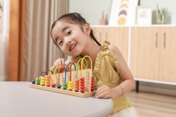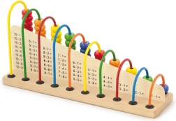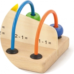 Ta kompaktowa drewniana pomoc do liczenia przynosi dzieciom radość z odkrywania liczb i prostych działań matematycznych. Na drewnianej tabliczce umieszczono zadania, a dziecko dopasowuje właściwą liczbę koralików na metalowych łukach. Dzięki intuicyjnej zasadzie dzieci naturalnie uczą się rozpoznawać liczby, liczyć i rozumieć związek między działaniem a wynikiem.