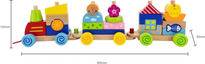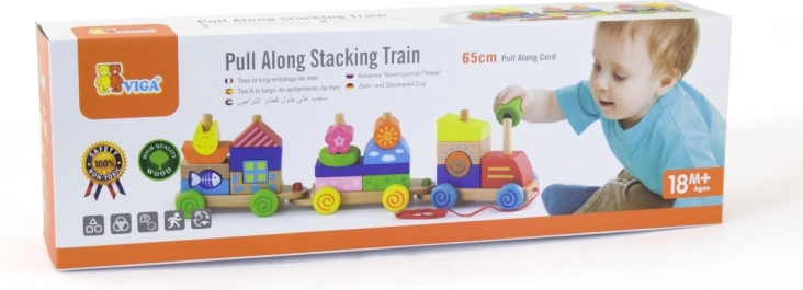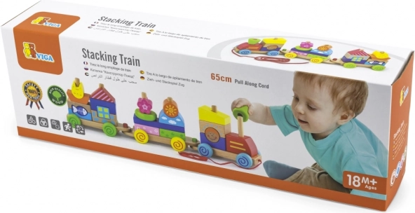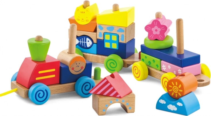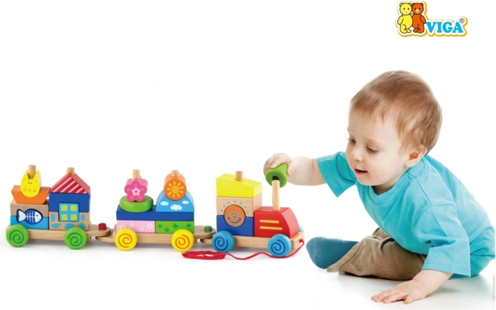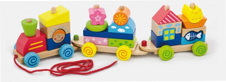 - Zabawka 2 w 1: ciągany pociąg i układanka do stawiania w wieże