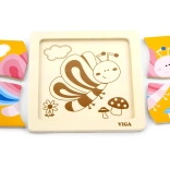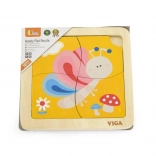 Pierwsza układanka dla najmłodszych: drewniane puzzle z motywem motyla od VIGA mają 4 duże elementy, które łatwo chwytać i układać w drewnianej ramce z podkładem. Wspierają małą motorykę, koordynację oko–ręka oraz myślenie logiczne, idealne od 18 miesięcy.