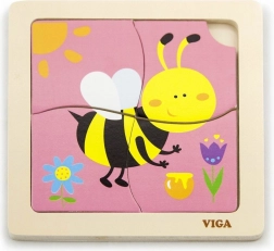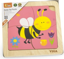 Puzzle zawierają 4 elementy z motywem pszczoły, które układają się w obrazek na podstawowej planszy.