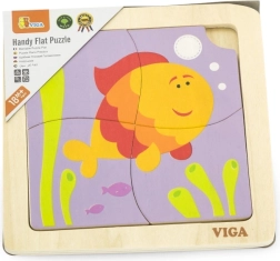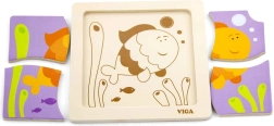 Odkryj magię układania z VIGA Drewniane puzzle Rybka. To dziecięce puzzle z motywem zwierzęcym jest idealne dla najmłodszych z 4 częściami do ich pierwszego układania.