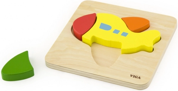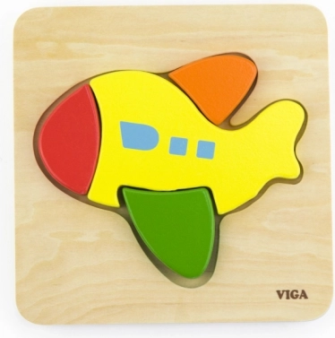 Odkryj pierwszą układankę dla najmłodszych: drewniane mini puzzle Viga z motywem samolotu. Zestaw zawiera 4 masywne elementy, które łatwo chwytać i wkładać w profilowaną drewnianą podstawkę. Zabawk... Pokaż więcej
