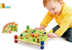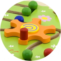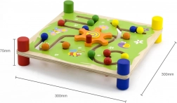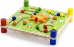 Gra pomaga dzieciom poprawiać umiejętności manualne rąk oraz koordynację wzrokowo-ruchową podczas umieszczania kolorowych kołków na planszy.