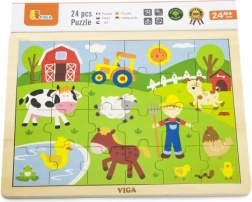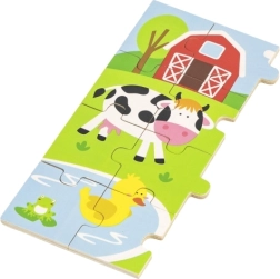 Te drewniane puzzle z motywem farmy są idealne dla dzieci, które dopiero zaczynają swoją przygodę z układankami i zagadkami. Ilustracje farmy są kolorowe i atrakcyjne, zachęcające do zabawy i nauki. Puzzle można