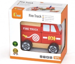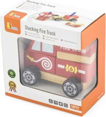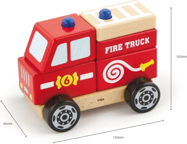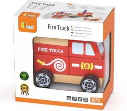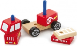 Układaj drewniane elementy na podwoziu i stwórz własny wóz strażacki. Dzieci trenują cierpliwość i koordynację krok po kroku.