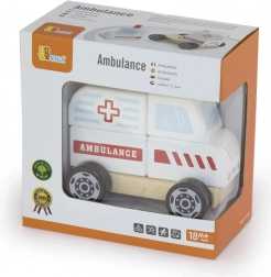 Drewniana układanka i jeżdżący pojazd – karetka