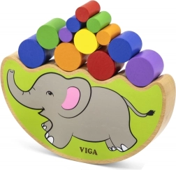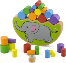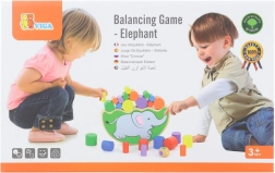 - Słoniowa baza balansowa, kolorowe drewniane waleczki, kolorowa kostka