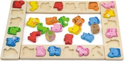 Zabawna drewniana gra dla dzieci od 3 lat, która rozwija rozpoznawanie kolorów i zwierząt, trenuje szybkie myślenie i reakcje oraz wspiera umiejętności językowe, liczenie i pracę zespołową. Zestaw z wysokiej jakości sklejki i drewna bukowego zawiera 4 plansze, 36 zwierzęcych elementów oraz dwie kostki – kolorową i ze zwierzętami.