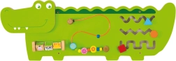 Odkryj zabawną i edukacyjną zabawkę, która oszczędza miejsce – ścienna tablica krokodyl łączy kilka aktywności w jednym kompaktowym module. Dzieci mogą przesuwać kształty w 3 labiryntach, ćwiczyć palce na drucianym torze z koralikami oraz układać obrazki z obrotowych klocków–puzzli. Kolorowe wykonanie i sympatyczny design natychmiast zachęcają do zabawy.