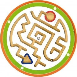 Labirynt z kuleczką i śrubki na gwincie trenują precyzję palców, chwyt oraz koordynację ręka–oko. Dzieci przesuwają kuleczkę, ćwicząc cierpliwość i koncentrację.