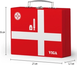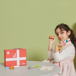 Drewniany zestaw dla małych lekarzy marki VIGA zawiera wszystko, co potrzebne do bezpiecznej i kreatywnej zabawy w gabinet. Wspiera empatię, wyobraźnię i rozwiązywanie problemów, pomaga pokonać strach przed lekarzem i oferuje wysoką jakość wykonania z naturalnego drewna w eleganckim opakowaniu prezentowym.