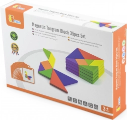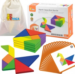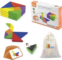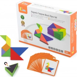 Ten kolorowy, drewniany tangram to idealna pomoc do domowej zabawy i edukacji przedszkolnej. Dzieci układają obrazki według dołączonych kart lub własnej wyobraźni, rozwijając wyobraźnię przestrzenną, kreatywność oraz umiejętność rozwiązywania problemów. Gładko wykończone elementy z litego drewna są przyjemne w dłoni i wytrzymałe na codzienne użytkowanie.
