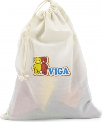 Gładkie, drewniane kształty pokryte matowymi, nietoksycznymi farbami są bezpieczne i przyjemne w dotyku. Wspierają naukę kolorów i kształtów oraz motorykę małą.