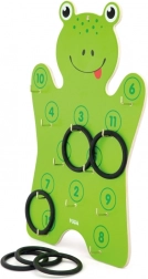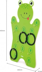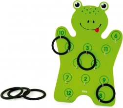 Zabawna drewniana gra dla dzieci od 3 lat, która rozwija małą motorykę, koordynację oko–ręka i celność. Żabi cel z ponumerowanymi kołkami zamienia każdy rzut w rywalizację – wystarczy trafić w odpowiednie pole punktowe i zebrać jak najwięcej punktów!