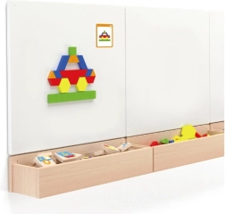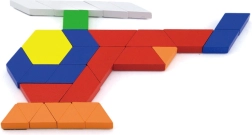 Geometriczne bloki dostarczają wiele zabawy. Dzieci mogą kopiować wzory z dołączonych kart lub tworzyć własne kombinacje. Bloki można przymocować do tablicy magnetycznej lub bawić się nimi na stole. Ten produkt został zaprojektowany do gry edukacyjnej, która pobudza małą motorykę oraz percepcję przestrzenną.