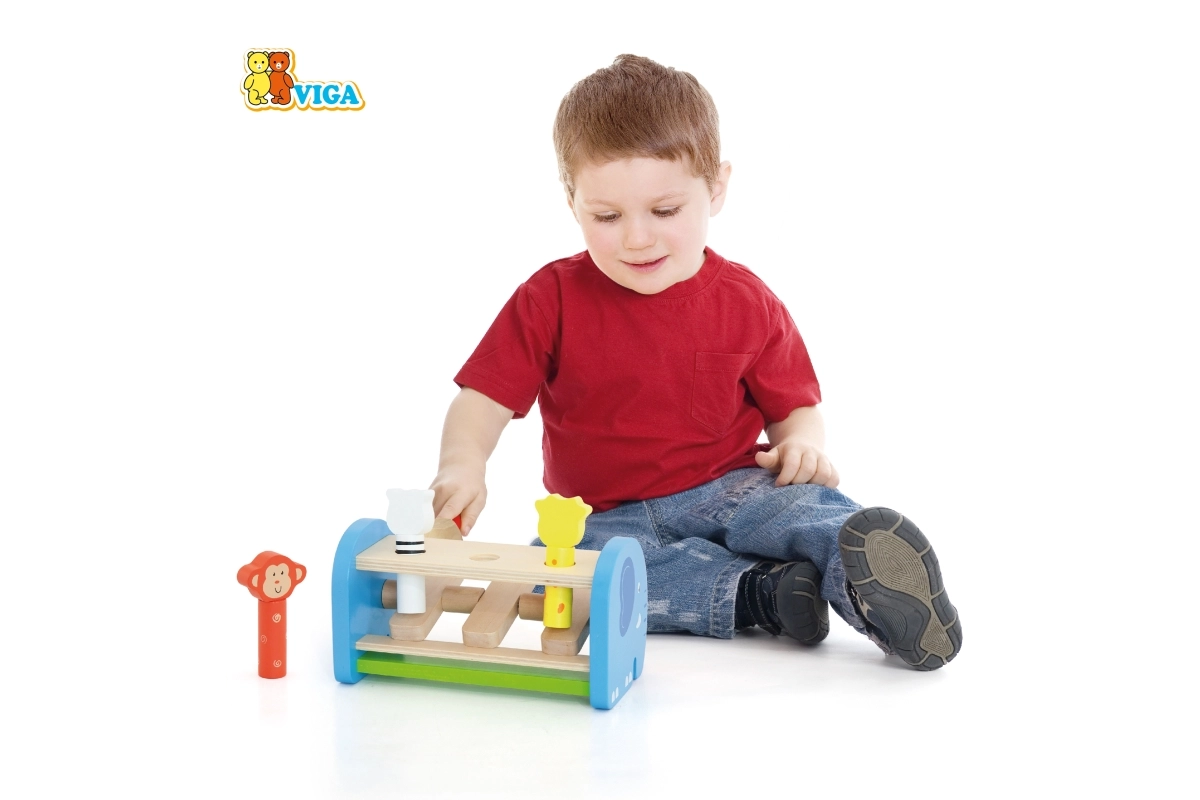 Uderzenia młoteczkiem rozwijają chwyt, siłę i koordynację ręka–oko, a zasada przyczyna–skutek uczy dzieci logicznego myślenia.