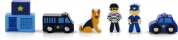 Wasze dzieci mogą tworzyć własne historie i scenariusze z tymi kolorowymi postaciami, które odzwierciedlają autentyczną atmosferę scen policyjnych: od policjantów po złodziei i policyjne psy. Wszystkie postacie wykonane są z wysokiej jakości drewna, co zapewnia ich trwałość i długą żywotność.