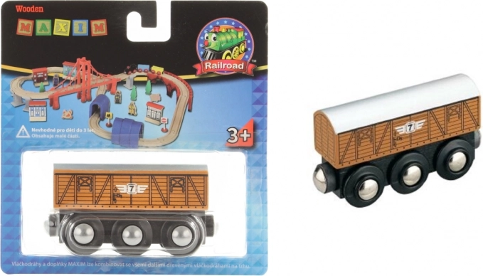 Drewniany pociąg z pastelowymi kolorami i zwierzątkami