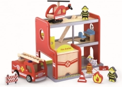 Ta szczegółowo wykonana drewniana remiza strażacka oferuje dzieciom autentyczne środowisko do ratunkowych misji. Dzięki czerwonej stacji z kilkoma poziomami, wozowi z drabiną i lądowisku dla helikoptera dzieci łatwo tworzą własne historie i ćwiczą koordynację oraz logiczne myślenie.