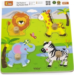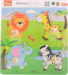 Ta wysokiej jakości drewniana układanka z czterema zwierzętami z zoo oferuje bezpieczną i stymulującą zabawę dla maluchów. Dzięki dużym drewnianym uchwytom dzieci łatwo chwytają każdy element i uczą się poprawnie umieszczać go na miejscu – pomaga w tym także obrazek pod elementem, który prowadzi do sukcesu i radości z ukończenia zadania.