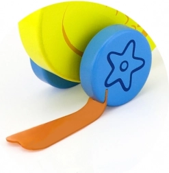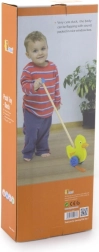 Drewniany pchacz kaczor na kiju to prosta, lecz skuteczna zabawka, którą polubi każde dziecko. To klasyczna zabawka przynosząca wiele korzyści. Uroczy żółty kaczor podczas ruchu energicznie porusza nóżkami, co motywuje dzieci do spacerów. Zabawka jest zapakowana w estetyczne pudełko z okienkiem, które umożliwia zobaczenie kaczuszki. W środku znajduje się kij z uchwytem, idealnie dopasowany do małej rączki dziecka. Kij nie jest trwale przymocowany, co ułatwia jego przechowywanie. Cała zabawka wykonana jest z drewna bukowego i pomalowana nietoksycznymi farbami w żywych kolorach, które przyciągają uwagę i zachęcają do zabawy, dostarczając mnóstwo radości.