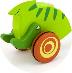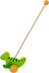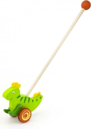 Drewniana pchana zabawka Dinozaur to klasyczna zabawka przeznaczona dla dzieci, które zaczynają się poruszać. Ten solidny dodatek wyposażono w kółka z antypoślizgowymi nasadkami, które chronią podłogę i ułatwiają ruch. Zielony dinozaur energicznie porusza łapkami podczas pchania, co przyciąga uwagę i motywuje dziecko do dalszej aktywności.
