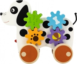 Ten drewniany piesek do ciągnięcia został zaprojektowany tak, aby stymulować nie tylko aktywność fizyczną dziecka, ale także jego zdolności poznawcze. Gdy piesek jedzie, zębatki się obracają, co tworzy interaktywne doświadczenie dla małych odkrywców.