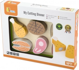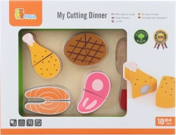 Każdy kawałek mięsa jest zaprojektowany tak, aby realistycznie naśladował prawdziwe produkty spożywcze. Dzieci mogą używać drewnianego noża do przecięcia mięsa, a następnie złożyć je z powrotem za pomocą rzepa. Zestaw jest świetnym dodatkiem do każdej dziecięcej kuchni i wspiera kreatywną zabawę.