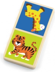 Odkryj barwny świat zwierząt z drewnianym dominem, zaprojektowanym tak, aby łączyć zabawę z nauką. Każdy element domina ma po jednej stronie piękną ilustrację różnych dzikich zwierząt, co pomaga dzieciom poznawać świat wokół nas.
