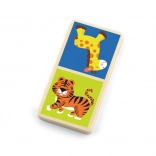 Drewniane domino ze zwierzętami to edukacyjna zabawka dla dzieci od 3 lat. Pomaga rozwijać wiedzę o zwierzętach oraz poprawia motorykę małą i logiczne myślenie.