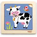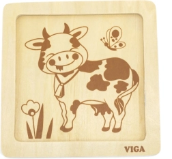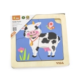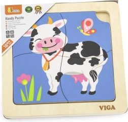 Drewniana układanka krówka marki Viga zapewnia najmłodszym świetny sposób na naukę rozpoznawania kształtów i rozwój motoryki małej. Zestaw zawiera 4 elementy układanki oraz obrazek, który pomaga dziecku w dopasowywaniu części. Puzzle są starannie wykonane z bezpiecznych drewnianych materiałów i malowane żywymi, nietoksycznymi farbami. Każda zabawa tą układanką będzie dla Twojego dziecka pełna radości i rozwoju.