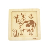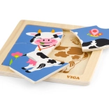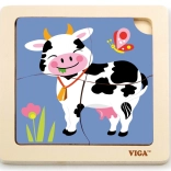 Drewniana układanka składa się w uroczy obrazek krówki, co wspiera kreatywność.