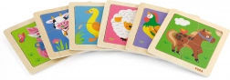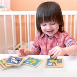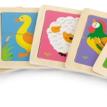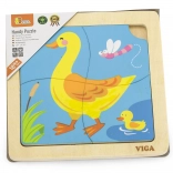 Drewniane puzzle Viga zawierają cztery tematyczne elementy, które łatwo montuje się na tablicy z obrazkiem. Każdy element wykonany jest z wysokiej jakości drewna i malowany bezpiecznymi, nietoksycznymi farbami, co zapewnia bezpieczeństwo dzieci oraz środowiska.