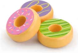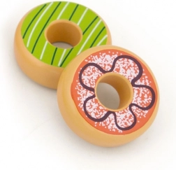 Każdy donut ma unikalny wzór przypominający polewę i dekorację, co pobudza wyobraźnię i naukę kolorów.