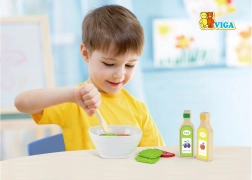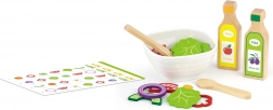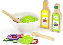 Ten wysokiej jakości drewniany zestaw sałatkowy zapewnia dzieciom realistyczną zabawę w kuchnię. Dzięki bogatemu wyposażeniu mali kucharze mogą przygotować własną sałatkę, mieszać składniki w misce i serwować przy pomocy sztućców. Zabawa wspiera zdrowe nawyki i naturalnie uczy rozpoznawać poszczególne rodzaje warzyw.