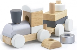 Ten elegancki drewniany pociąg–układanka łączy solidne wykonanie, naturalne materiały i naukę przez zabawę. Dzieci mogą dowolnie przestawiać klocki, trenować chwyt oraz rozwijać koordynację ręka–oko i wyobraźnię. Dzięki przyjaznemu designowi i gładkim krawędziom zabawa jest bezpieczna i przyjemna.