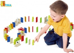 Odkryj zabawną i edukacyjną grę dla dzieci – drewniane domino Viga z motywem farmy. Zestaw zawiera 116 kolorowych elementów w różnych kształtach, które wspierają cierpliwość, koncentrację, motorykę małą i kreatywność. Buduj pomysłowe tory, popchnij pierwszy klocek i obserwuj efektowny efekt domina. Praktyczne opakowanie z uchwytem idealnie sprawdzi się także jako prezent.