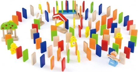 Gra rozwija kluczowe umiejętności: trenuje koordynację oko–ręka, wspiera koordynację, precyzję ruchów oraz współpracę między dziećmi. Po ułożeniu wystarczy popchnąć pierwszy element i cieszyć się idealnym efektem domina. Praktyczne wiaderko z rączką ułatwia przechowywanie i przenoszenie.