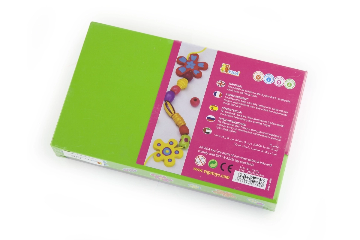 Bezpieczne drewniane koraliki są lekkie w rączkach i odpowiednie dla małych twórców od 3 lat. Zestaw rozwija małą motorykę, cierpliwość i percepcję barw, a także stanowi wspaniały prezent dla małych miłośników tworzenia i zabawek z naturalnych materiałów.