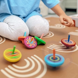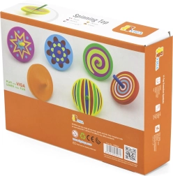 Kolorowe drewniane bączki VIGA zainteresują każde dziecko podczas zabawy. Podczas kręcenia bączki tworzą interesujące wzory, które podobają się dzieciom.